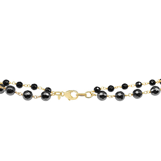 14k 2 Layer Black Onyx, Hematite Necklace 18/20"