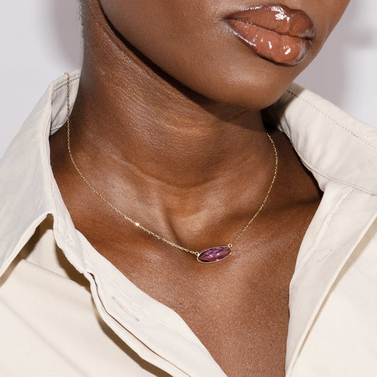Sold out14k Amethyst Oval Bezel Necklace 17"