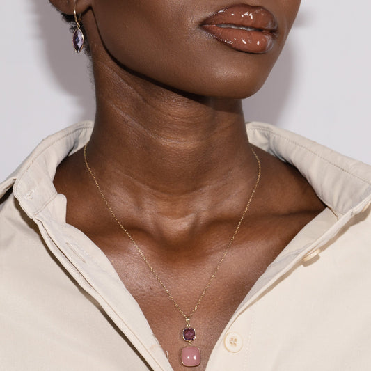 14k Amethyst Guava Quartz Pendant Necklace 17/18"