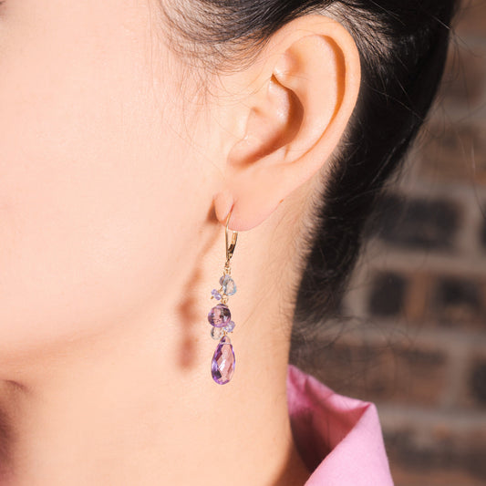 14k Amethyst Guava Quartz Dangle Leverback Earring