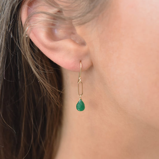 14k Amethyst Drop Paperclip Chain Hook Earring