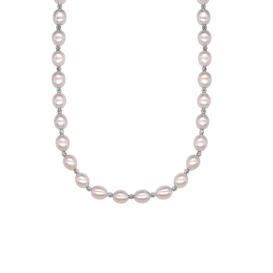 Sterling Silver 5 Row Multi Shape Pink Freshwater Pearl Necklace 17"-21"
