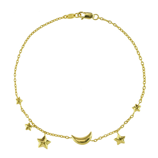 Séchic 14k Gold Moon & Star Charm Bracelet 7.5"