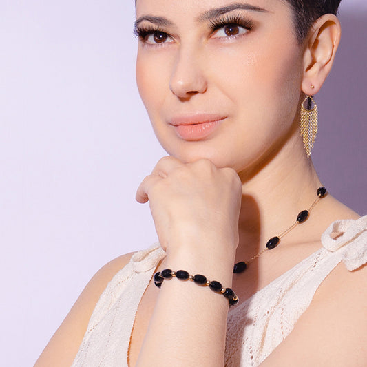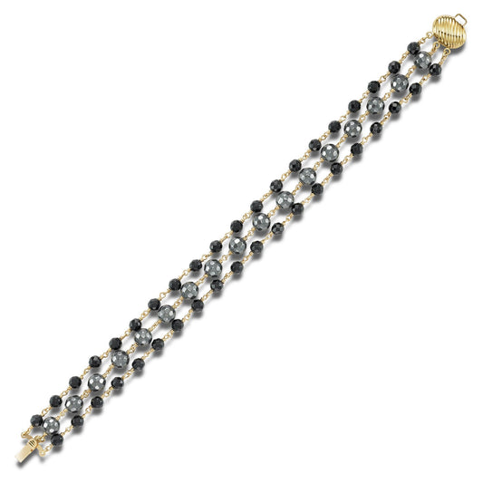 14k Black Onyx Hematite 3 Row Link Bracelet 8"