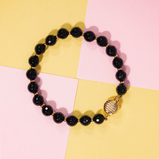 14k Black Onyx Roundel Double-Sided Clasp Bracelet 7.5"