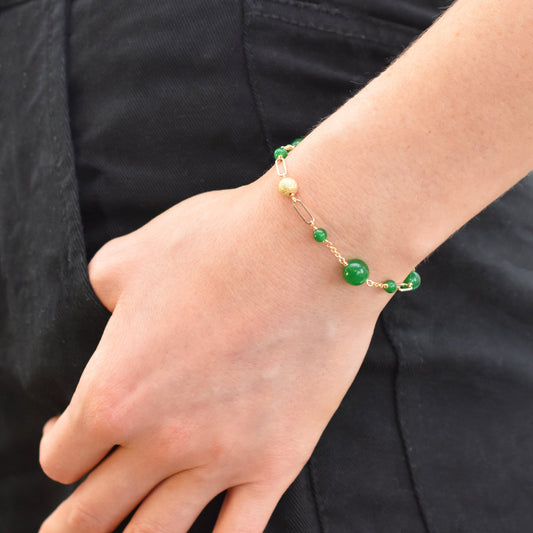 14k Malachite, Green Amethyst 3 Row Strech Bracelet