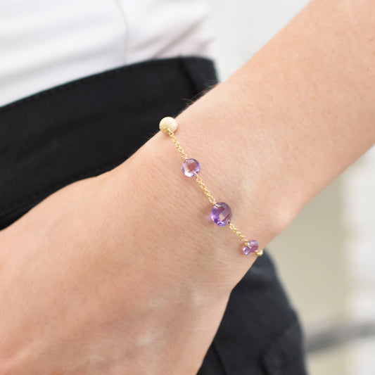 14k Garnet, Citrine, Peridot, Amethyst, and Blue Topaz Bracelet 7.25"