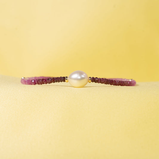 14k Ruby Freshwater White Pearl Bracelet 6.5-7.5"