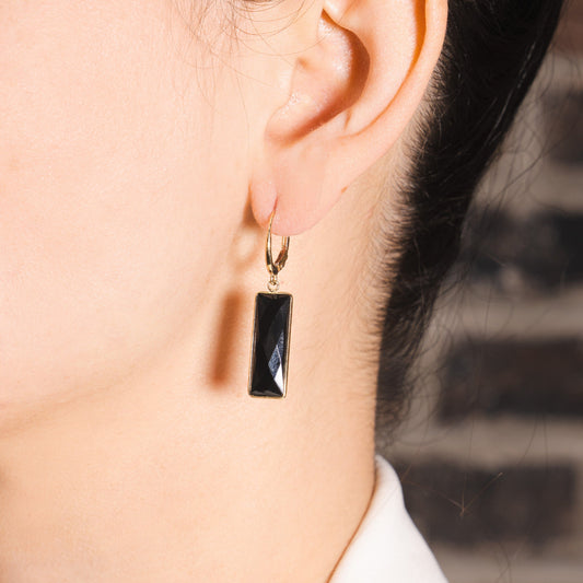 14k Black Onyx Rectangle Bezel Leverback Earring