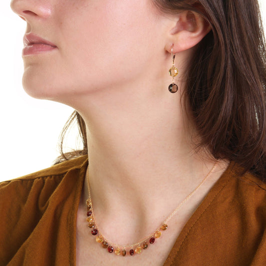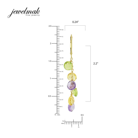 14k Peridot, Citrine, and Amethyst Coin Shape Leverback Drop Earring