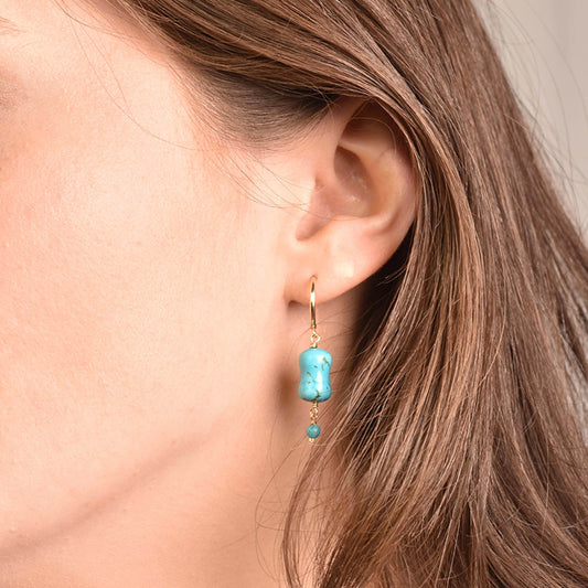 14k Turquoise Dual Oval Bezel Leverback Earring