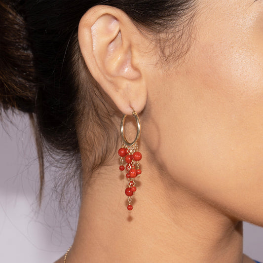 14k Angel Skin Coral Rondelle Linear Leverback Earrings
