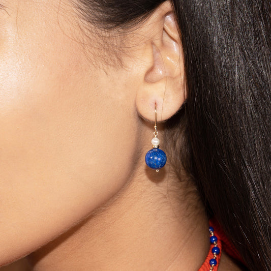 14k White Freshwater Pearl Lapis Drop Hook Earring