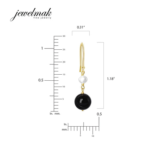 14k White Freshwater Pearl Black Onyx Hook Earring