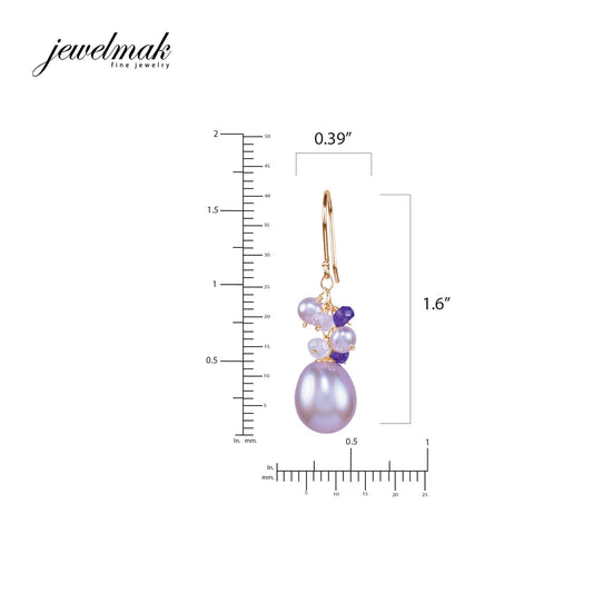 14k Pink Freshwater Pearl, Amethyst. and Rose Quartz Hook Earring