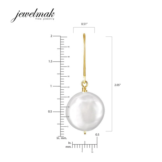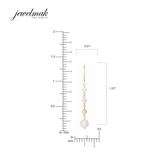 14k White Freshwater Pearl Link Leverback Dangle Earring