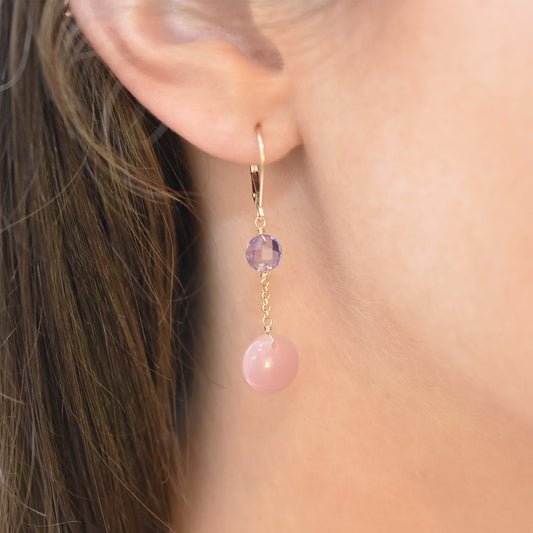 14k Amethyst Guava Quartz Dangle Leverback Earring
