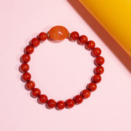 Y2K 14k Red Coral Carnelian Stretch Bracelet 7.5"