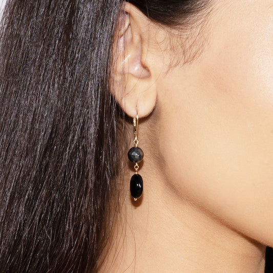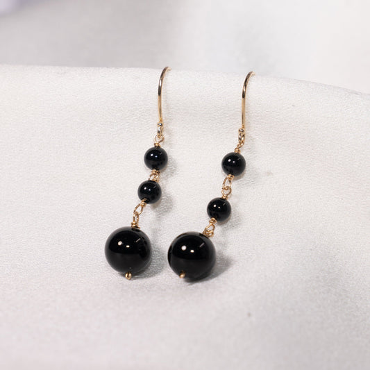 14k White Freshwater Pearl Black Onyx Hook Earring