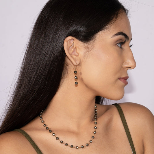 14k Pyrite Faceted Round Triple Link Hook Earring