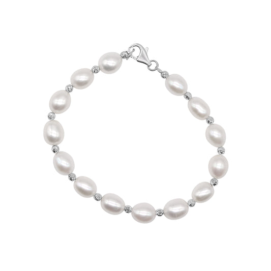 Sterling Silver Grey or White Freshwater Pearl Bracelet 7.5"