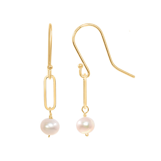 14k Pink Freshwater Pearl Paperclip Link Hook Drop Earring