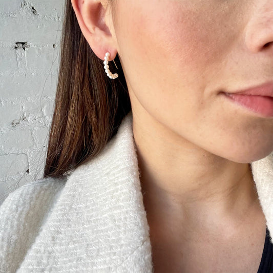 14k White & Pink Freshwater Pearl Half-Hoop Earrings